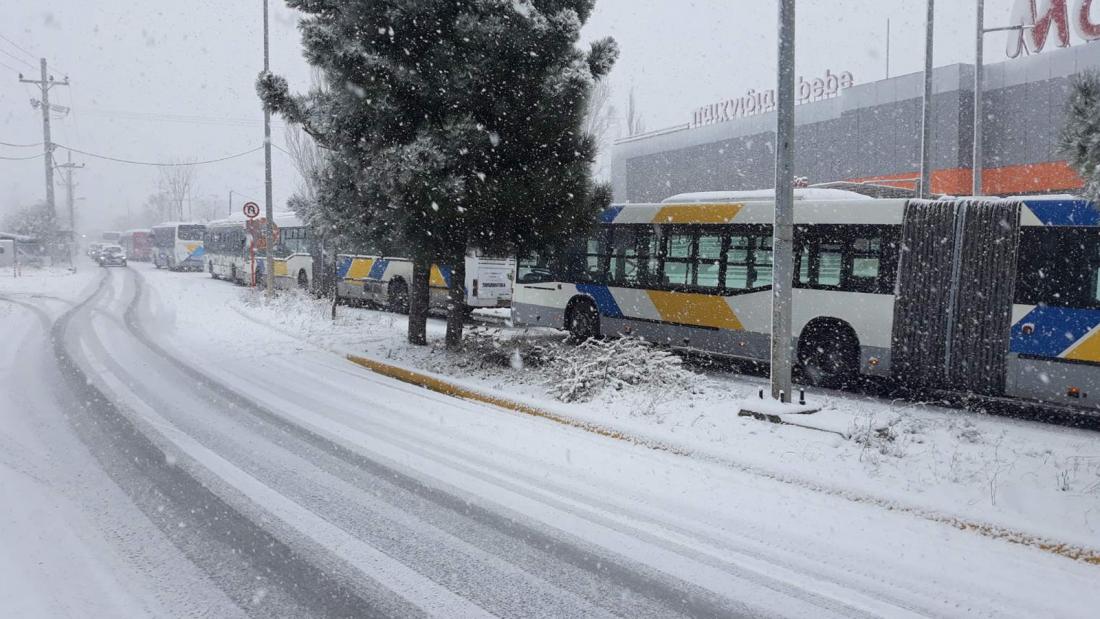 Αποσύρονται από την κυκλοφορία άμεσα όλα τα λεωφορεία και τρόλεϊ, λόγω της χιονόπτωσης στην Αττική.