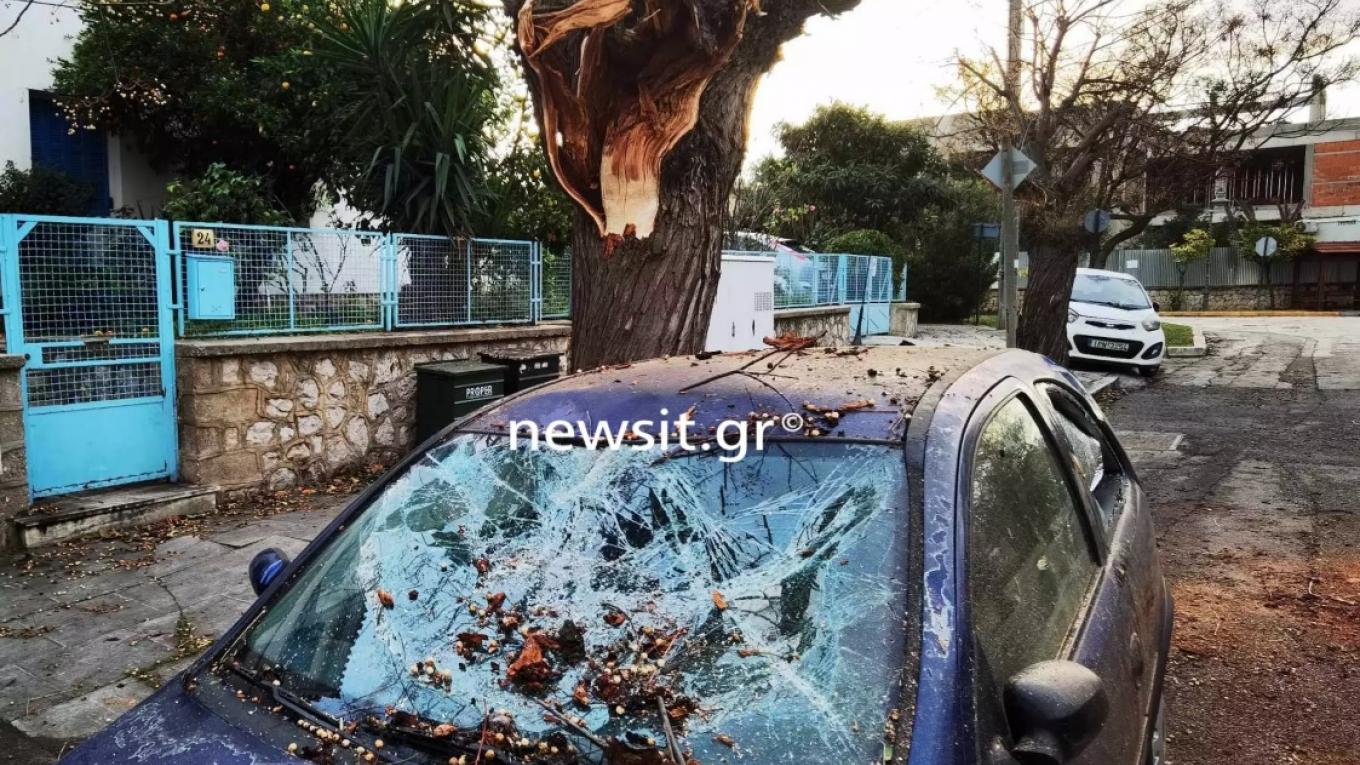Στη Φιλοθέη κλαδιά από δέντρα έπεσαν πάνω σε αυτοκίνητα προκαλώντας μεγάλες ζημιές.