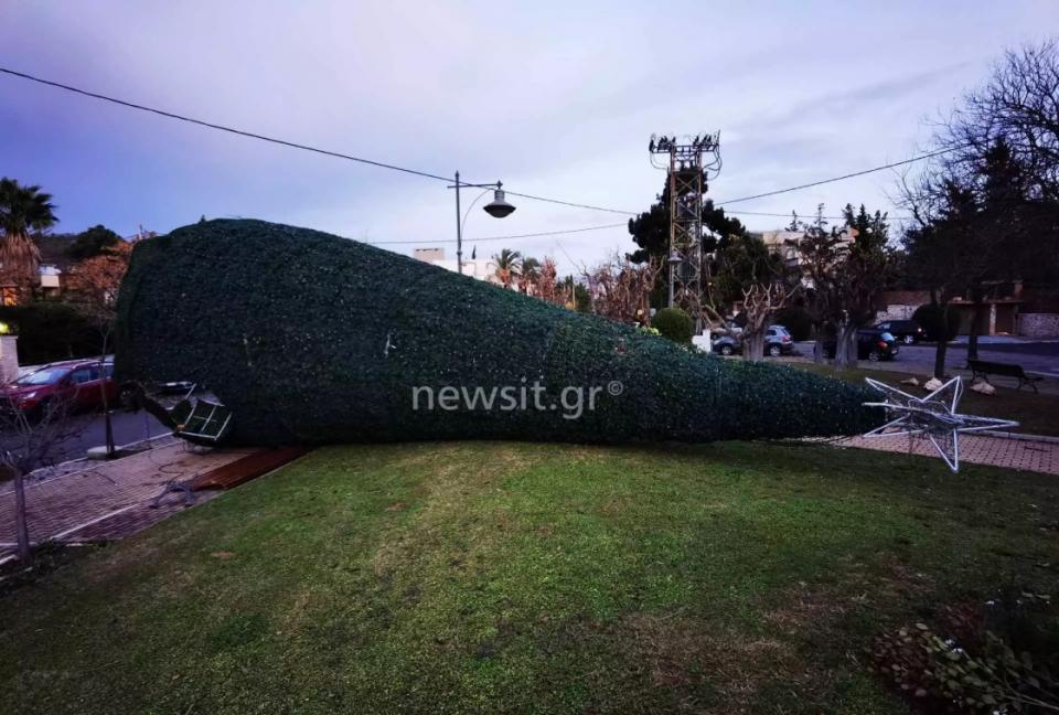 Στην πλατεία Σιαδήμα της Φιλοθέης έπεσαν φυσικά δέντρα αλλά και το χριστουγεννιάτικο δέντρο που είχε τοποθετηθεί, ενώ ένα από τα δέντρα έπεσε πάνω σε σταθμευμένα αυτοκίνητα.