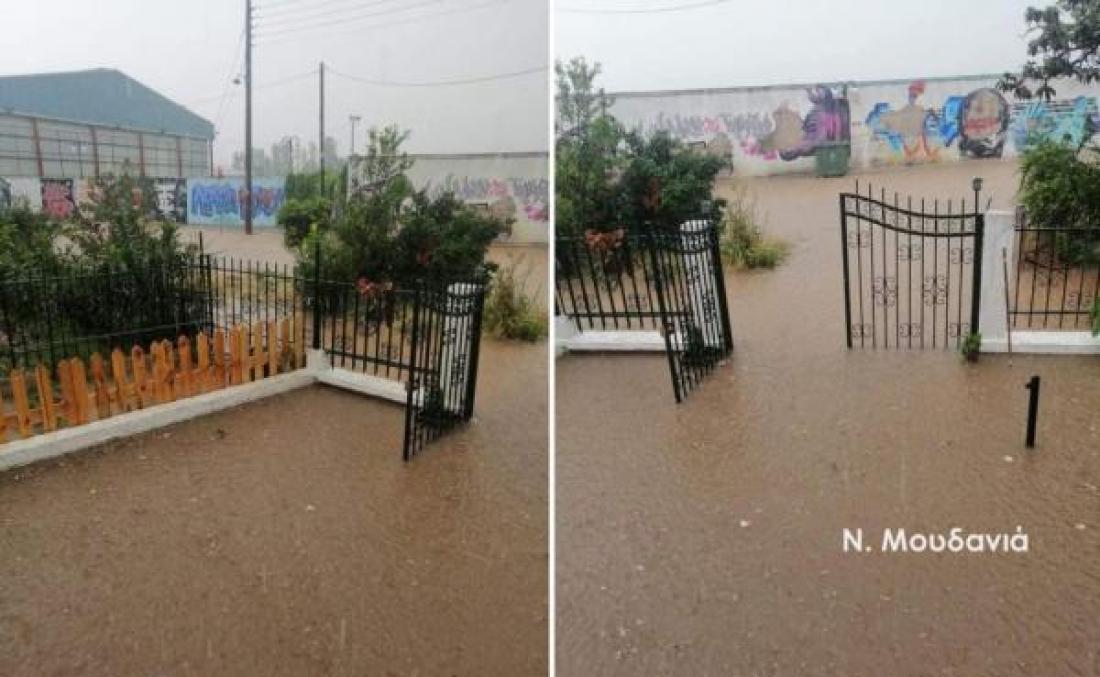 Στην Επανωμή μάλιστα το νερό έφτασε αρκετά ψηλά, σκεπάζοντας αυτοκίνητα και γεμίζοντας τις εισόδους των σπιτιών.
