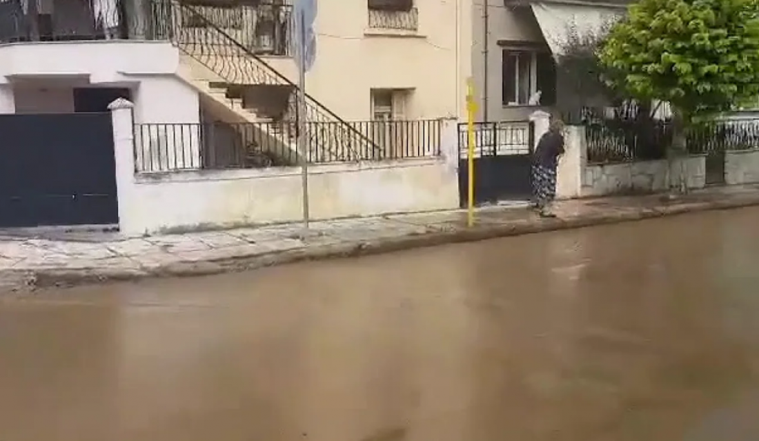 Με τις σκούπες στα χέρια, κάτοικοι σε διάφορες περιοχές της πόλης των Σερρών, προσπαθούν να διώξουν τα νερά.