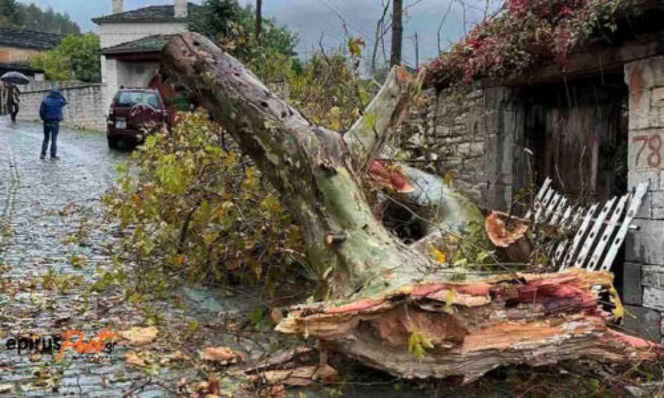 Τα προβλήματα στην Ήπειρο ξεκίνησαν από το Μέτσοβο, όπου μεγάλα κλαδιά και δέντρα κατέρρευσαν από τους ισχυρούς ανέμους με αποτέλεσμα να προκληθούν ζημιές σε σταθμευμένα αυτοκίνητα.