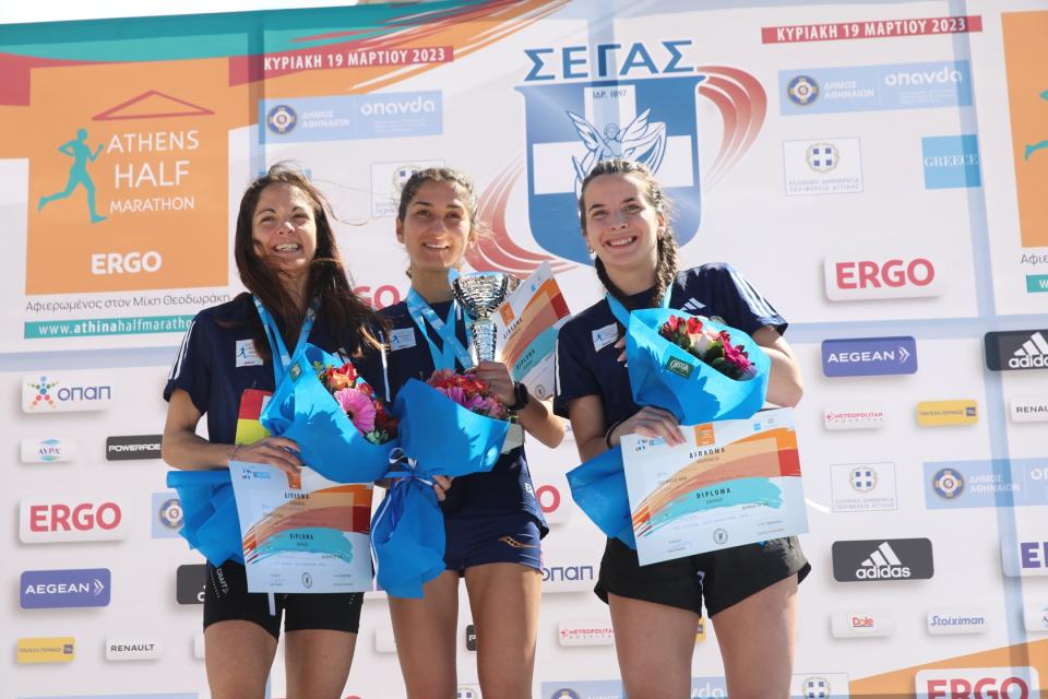 Στις γυναίκες, η Ισμήνη Παναγιωτοπούλου (ΓΣ Αναγέννηση Λαμίας) αναδείχθηκε νικήτρια με επίδοση 1:17.46 κι επιβεβαίωσε την καλή της κατάσταση και την ανοδική της πορεία. Η αθλήτρια του Σάββα Κουμπούρα, από την αρχή της κούρσας επέλεξε να οδηγήσει και κατάφερε να διατηρήσει τον ρυθμό της μέχρι το τέλος. Το ασημένιο μετάλλιο κατέκτησε η νικήτρια του Μαραθωνίου Αθήνας, Βασιλική Κωνσταντινοπούλου (ΣΑΠΚ Νεάπολης) με 1.18.28 και το χάλκινο η Σταματία Νούλα (ΝΓΣ Ηρακλής) με 1.21.13. Μάλιστα η αθλήτρια του Ηρακλή κατέκτησε το μετάλλιο πάνω στο νήμα και κάνοντας δυνατό σπριντ με την Ευσταθία Φλώρου που τελικά τερμάτισε τέταρτη με την ίδια επίδοση.