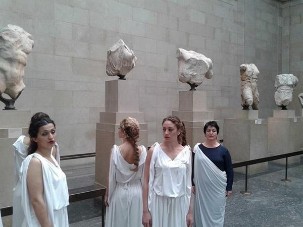 Μία εντελώς ξεχωριστή όσο και πρωτότυπη διαμαρτυρία έλαβε χώρα το Σαββατοκύριακο στο Λονδίνι. Επρόκειτο για ένα ιδιαίτερο καλλιτεχνικό δρώμενο για την επιστροφή των Γλυπτών του Παρθενώνα. Η διεθνούς φήμης σοπράνο Σόνια Θεοδωρίδου συνοδευόμενη από έξι Ελληνίδες ντυμένες στα λευκά, ως άλλες Καρυάτιδες, μπήκαν στο Βρετανικό Μουσείο αναζητώντας την χαμένη «αδερφή τους».