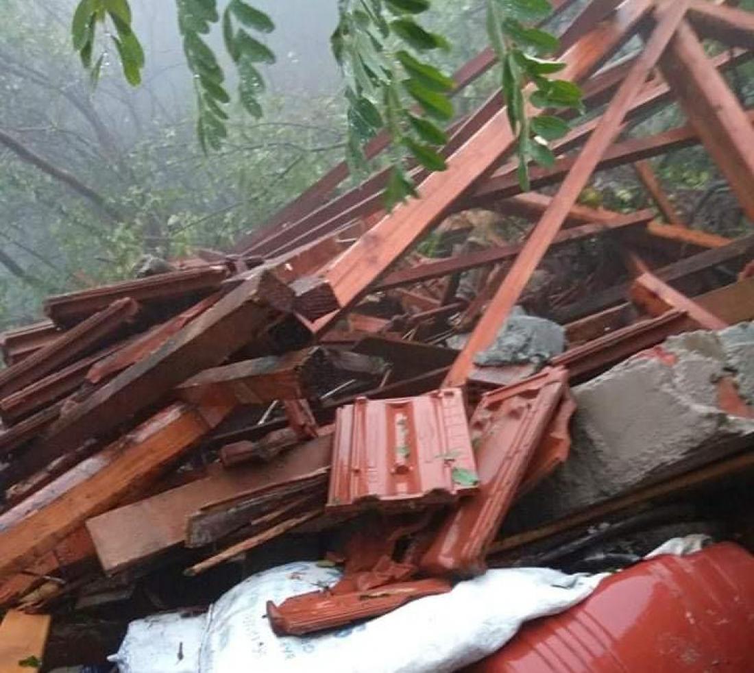 Κατέρρευσε η στέγη του σπιτιού τους κατά τη διάρκεια της νεροποντής, ωστόσο οι οι πυροσβέστες δεν μπορούν να προσεγγίσουν το σημείο, καθώς και οι δυο δρόμοι που οδηγούν στο χωριό έχουν πλημμυρίσει.