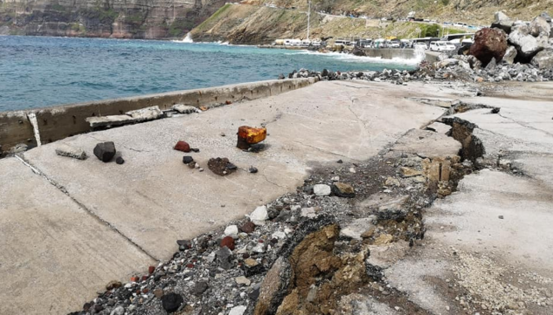 Μεγάλες ζημιές υπέστη το λιμάνι της Σαντορίνης εξαιτίας της κακοκαιρίας και των θυελλωδών ανέμων που επικρατούσαν τις προηγούμενες μέρες.