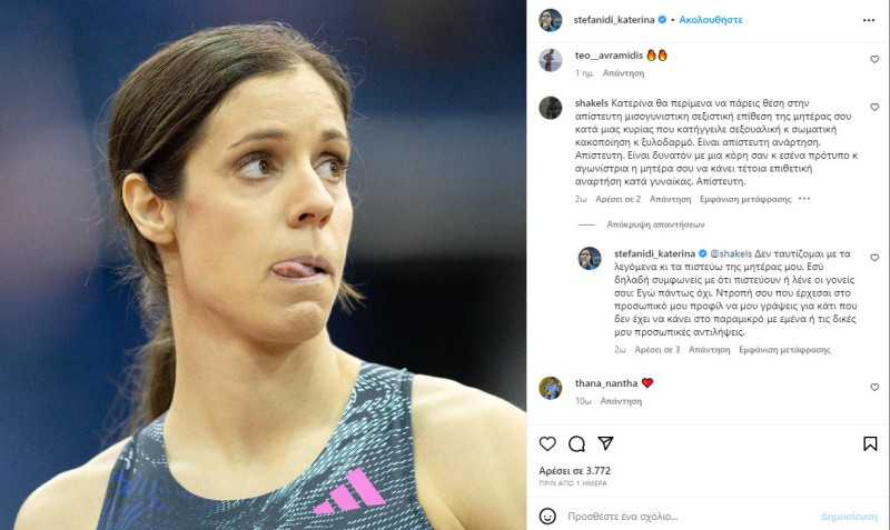 Ανάλογο σχόλιο υπήρξε και σε ανάρτηση της Κατερίνας Στεφανίδη στο Instagram.