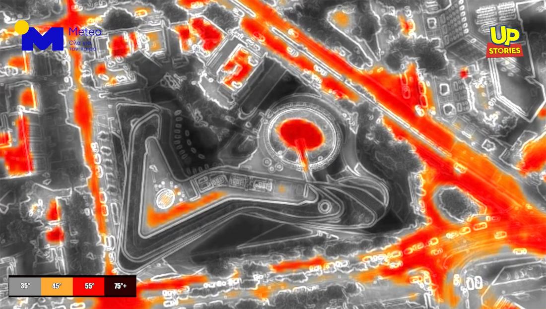 Οι υψηλότερες τιμές θερμοκρασίας καταγράφηκαν σε δρόμους μικρής κυκλοφορίας και σε στέγες παλαιών κτιρίων με κλιματιστικές μονάδες.