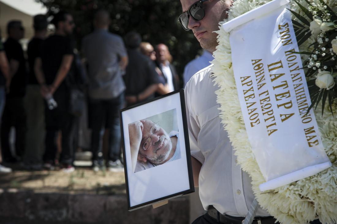 Τραγικές φιγούρες στην κηδεία του αγαπητού δημοσιογράφου η ηλικιωμένη μητέρα και τα δύο παιδιά του, ενώ εμφανώς συντετριμμένος ήταν ο αδερφός του,, ο οποίος και εκφώνησε επικήδειο, ο οποίος, μεταξύ άλλων, σχολίασε ότι τώρα που θα ταφεί δίπλα στον πατέρα τους το σημαντικό σκιτσογράφο Αρχέλαο θα κάνουν ένα φοβερό δίδυμο με την πένα και το πενάκι τους και υποσχέθηκε να έχει τα παιδιά του εκλιπόντος σαν δικά του παιδιά.