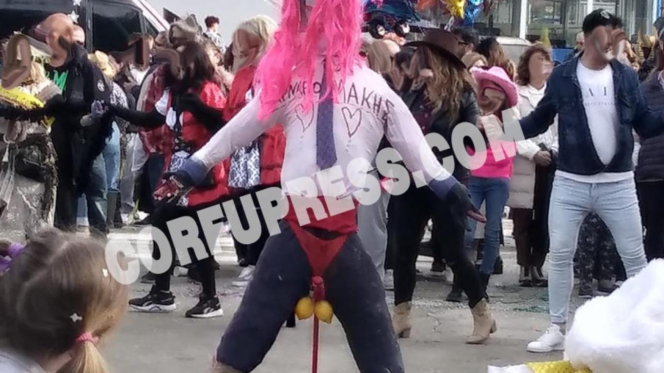 Σύμφωνα με το corfupress.com, οι καρναβαλιστές περιέφεραν την κακόγουστη καρικατούρα του αρχηγού της αξιωματικής αντιπολίτευσης με φωτογραφία στη θέση του προσώπου έντονα βαμμένη στα χείλια, γυναικείο εσώρουχο και ανοικτά πόδια με τα γεννητικά όργανα να ξεχωρίζουν, πίσω μία σκούπα να την στηρίζει και το πλήθος να χορεύει κυκλικά γύρω του!