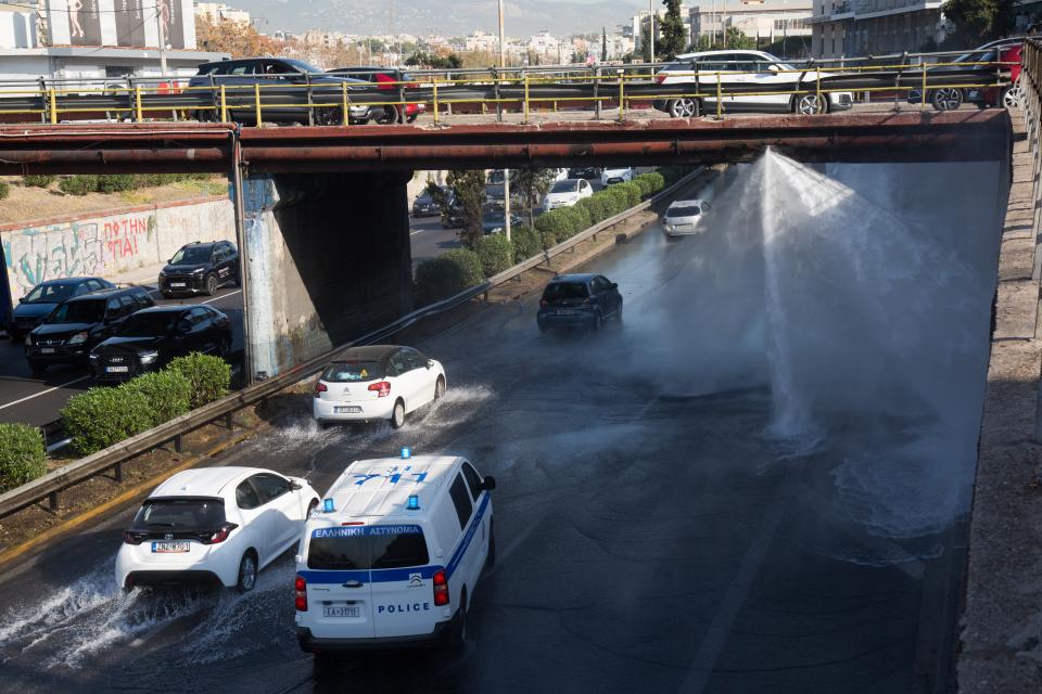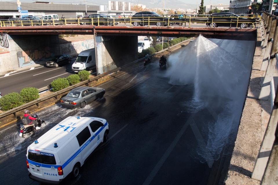 Η παροχή νερού στον αγωγό της ΕΥΔΑΠ που προκάλεσε σοβαρό πρόβλημα έχει διακοπεί, ωστόσο τα σοβαρά προβλήματα στην κίνηση συνεχίζονται.