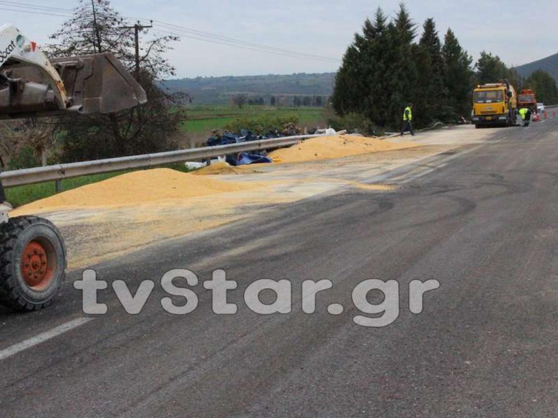 Η Εθνική στο ρεύμα προς Αθήνα παρέμεινε κλειστή για περίπου 7 ώρες μέχρι να απελευθερωθεί ο δρόμος από το βαρύ όχημα και να καθαριστεί το οδόστρωμα από το καλαμπόκι .