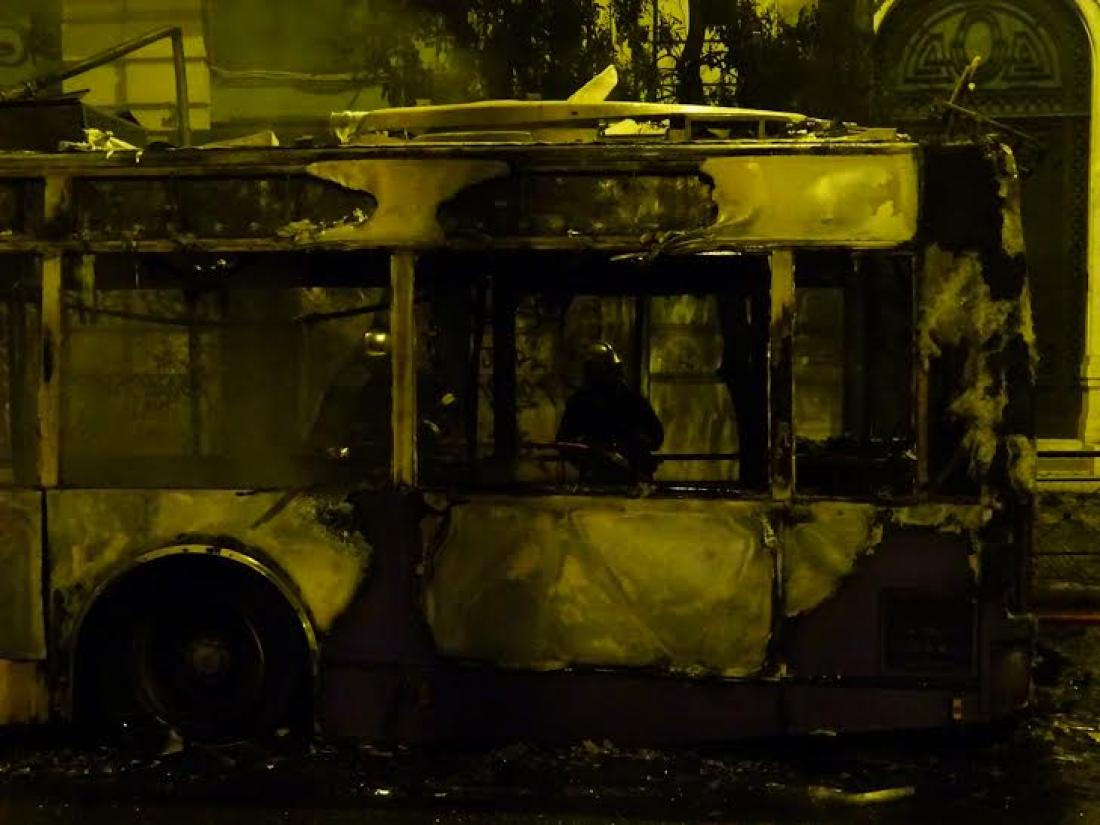 Με βόμβες μολότοφ, άγνωστοι έκαψαν, μετά τα μεσάνυχτα, ένα λεωφορείο και ένα τρόλεϊ, που κινούνταν έξω από το Πολυτεχνείο, στην οδό Πατησίων. Μάλιστα στο λεωφορείο επέβαιναν 15 επιβάτες, οι οποίοι και κινδύνεψαν. Αυτό έγινε στις 12.35. Στη συνέχεια έβαλαν φωτιά σε κάδους απορριμμάτων στην περιοχή.
