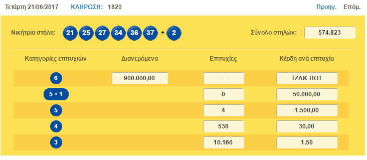 Οι νικητές της πρώτης κατηγορίας της κλήρωσης του θα μοιραστούν περισσότερα από 950.000 ευρώ!