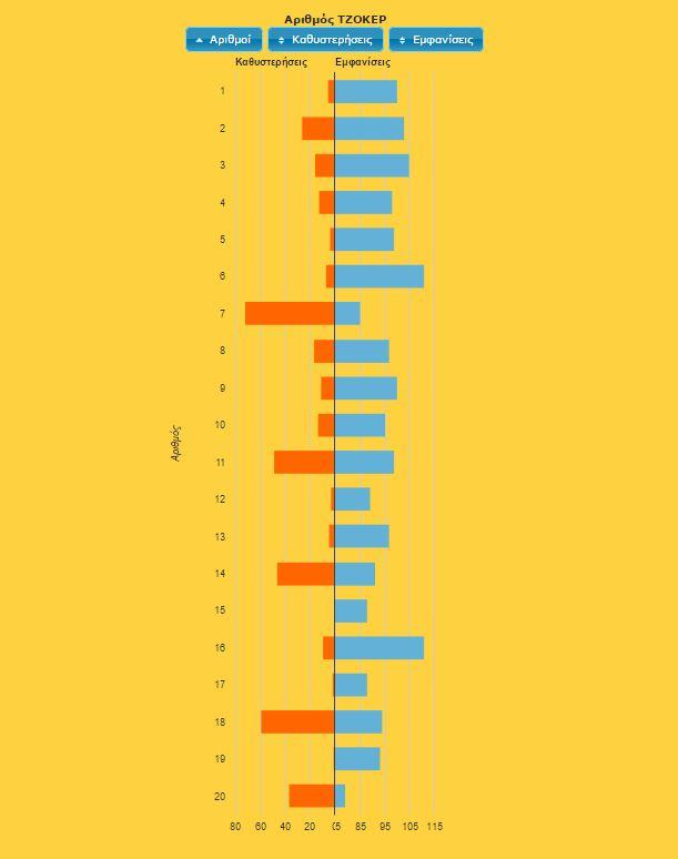 Δείτε παρακάτω ποιοι αριθμοί βγαίνουν συχνά και ποιοι παρουσιάζουν καθυστερήσεις: