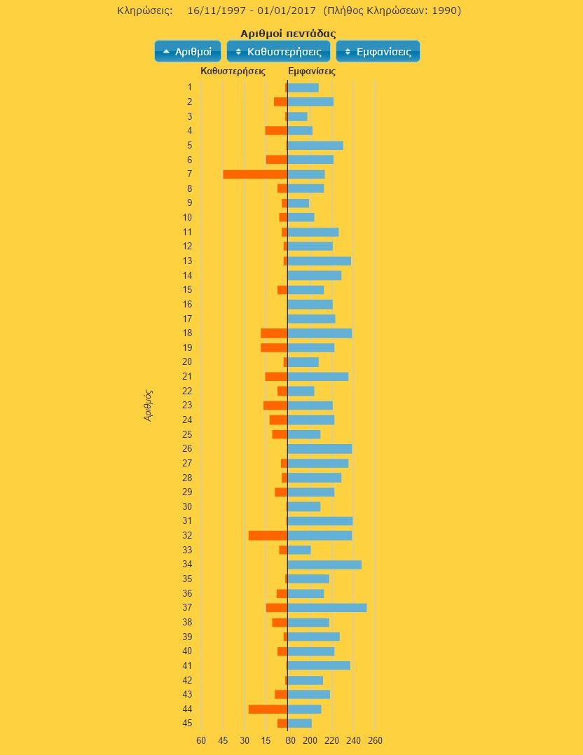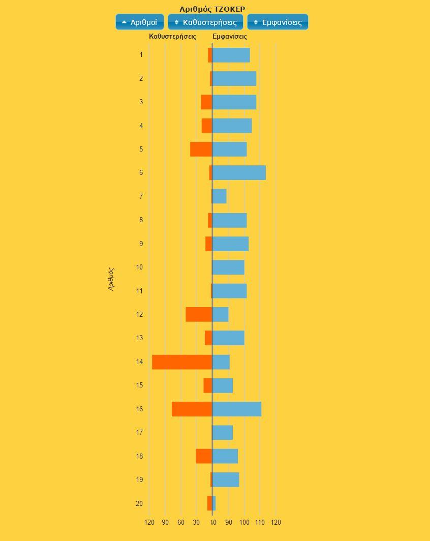 Για να έχετε περισσότερες πιθανότητες επιτυχίας δείτε ποιοι αριθμοί βγαίνουν συχνά και ποιοι παρουσιάζουν καθυστερήσεις.