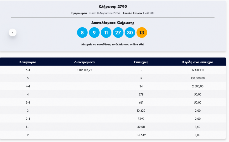 Κλήρωση Τζόκερ 2790 (8/8/2024): Αυτοί είναι οι τυχεροί αριθμοί
