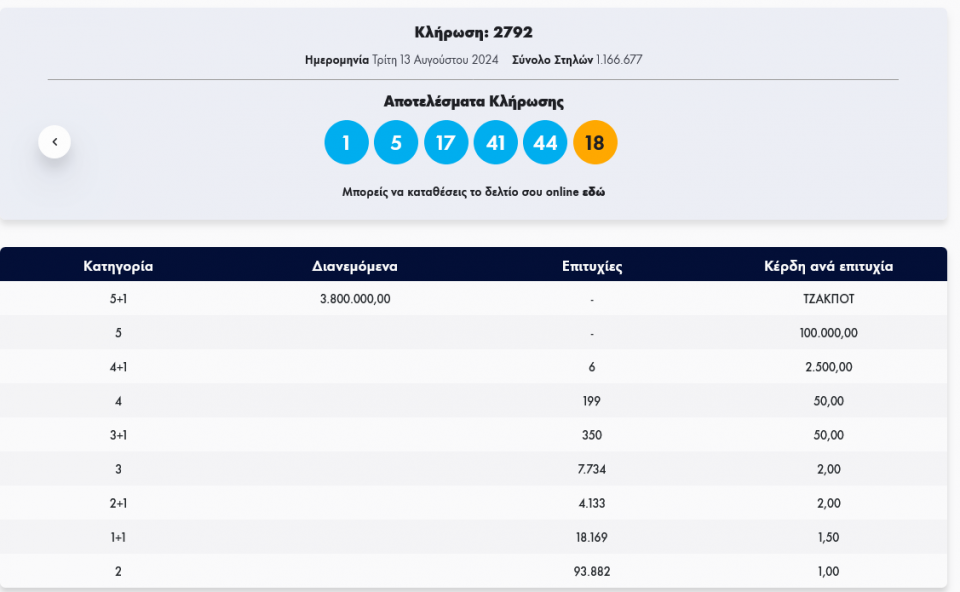 Κλήρωση Τζόκερ 2792 (13/8/2024): Αυτοί είναι οι τυχεροί αριθμοί