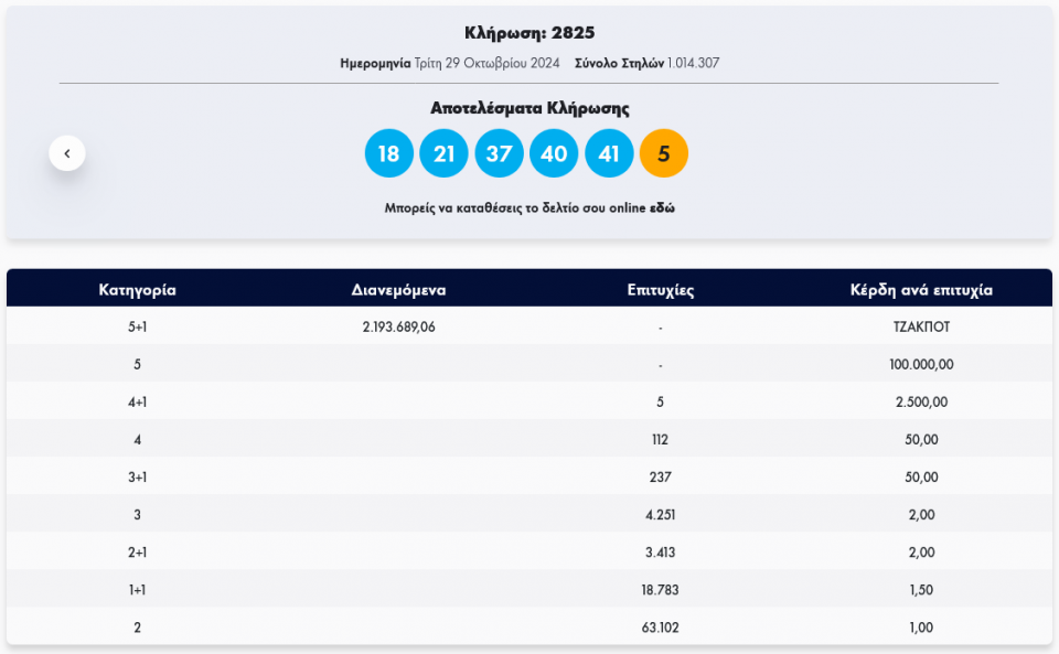 Κλήρωση Τζόκερ 2825 (29/10/2024): Αυτοί είναι οι τυχεροί αριθμοί