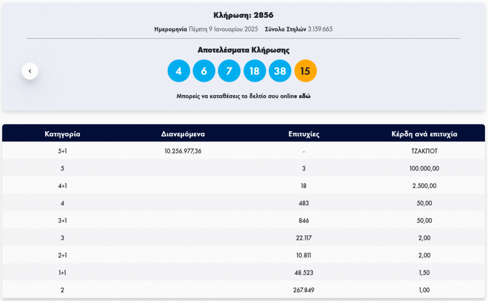 Κλήρωση Τζόκερ 2856 (9/1/2025): Αυτοί είναι οι τυχεροί αριθμοί που κερδίζουν