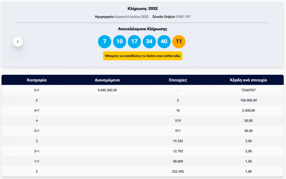 Κλήρωση Τζόκερ 2932 (6/7/2025): Αυτοί είναι οι τυχεροί αριθμοί που κερδίζουν
