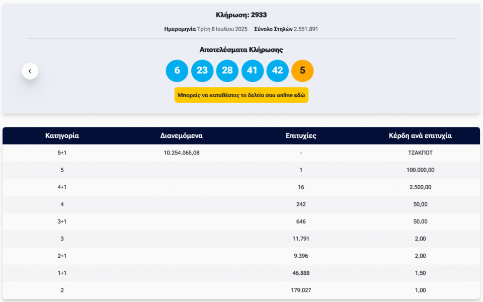 Κλήρωση Τζόκερ 2933 (8/7/2025): Αυτοί είναι οι τυχεροί αριθμοί που κερδίζουν