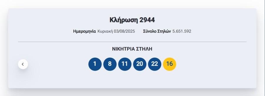 Κλήρωση Τζόκερ 2944 (3/8/2025): Αυτοί είναι οι τυχεροί αριθμοί που κερδίζουν