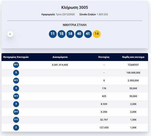 Κλήρωση Τζόκερ 3005 (23/12/2025): Αυτοί είναι οι τυχεροί αριθμοί που κερδίζουν