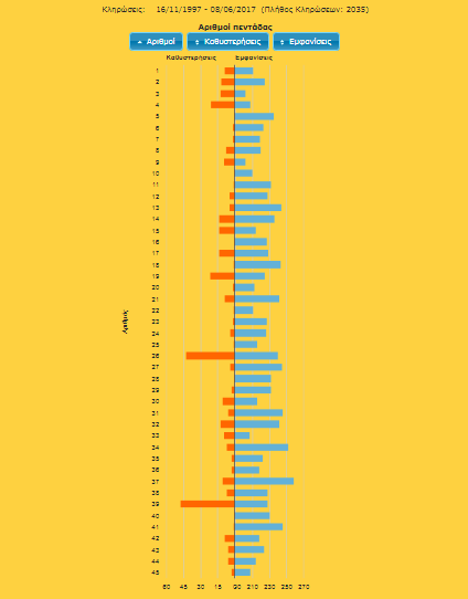 Για να αυξήσετε τις πιθανοτητες επιτυχίας δείτε ποιοι αριθμοί βγαίνουν συχνά από την κληρωτίδα και ποιοι παρουσιάζουν καθυστερήσεις.