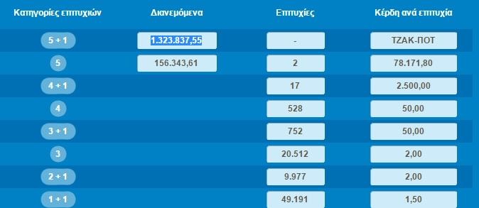11, 15, 19, 32, 44 και τζόκερ ο αριθμός 1.