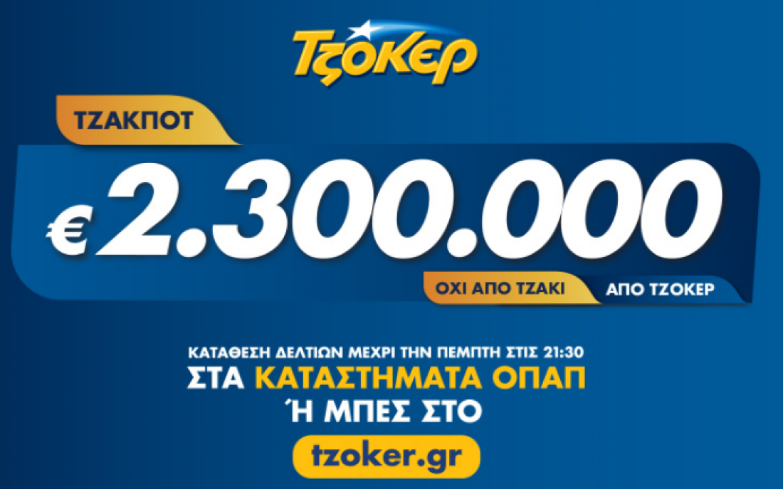 Μετά το νέο Τζακ Ποτ που σημειώθηκε σήμερα, στην επόμενη 2040η κλήρωση του Τζόκερ της Πέμπτης 1/8/2019, οι υπερτυχεροί θα μοιραστούν το ποσό των 2.300.000 ευρώ!