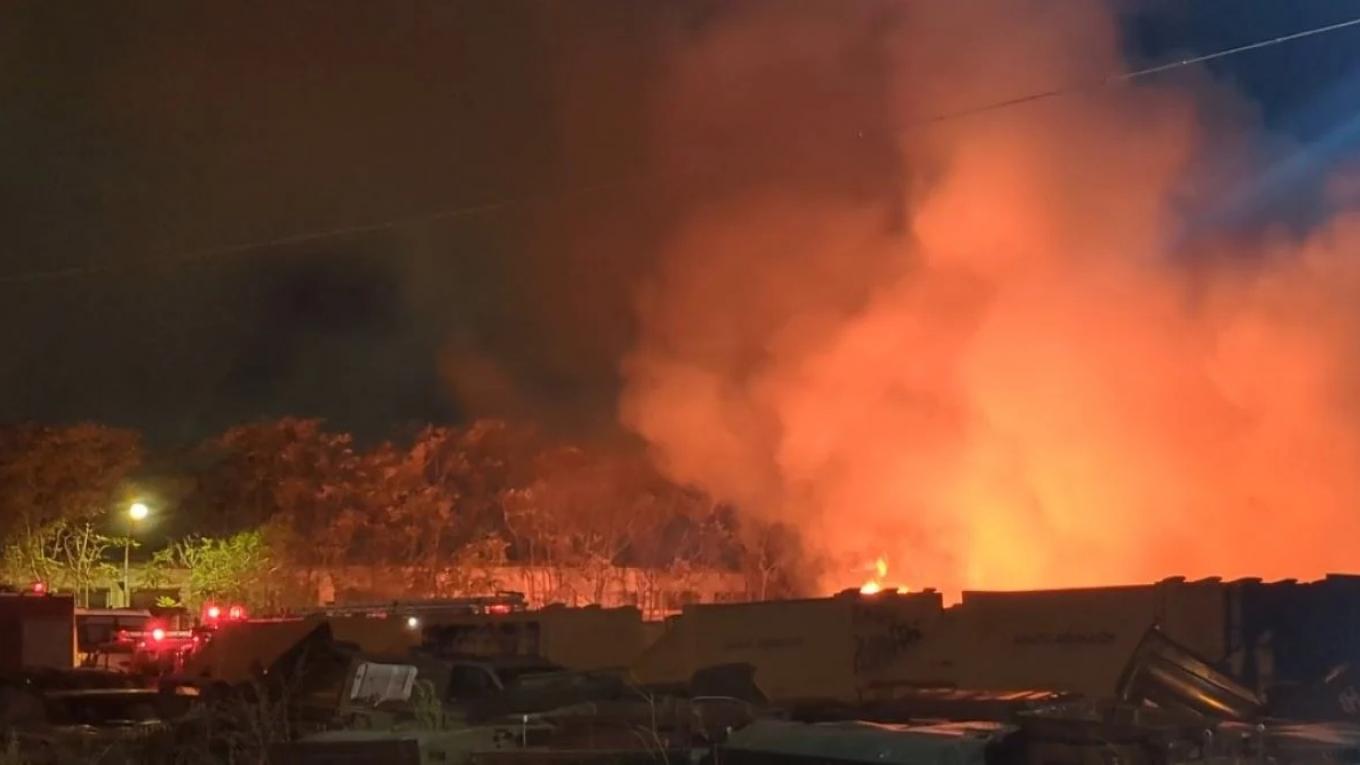 Θα χρειαστεί αρκετή ώρα για την πλήρη κατάσβεση γιατί υπάρχει πολύ καύσιμη ύλη, σύμφωνα με την Πυροσβεστική.