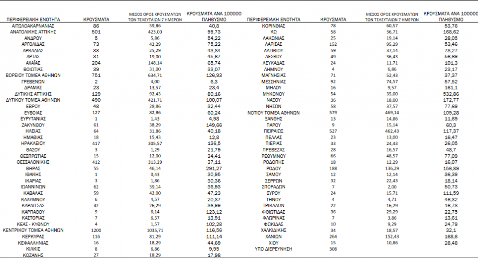 Αναλυτικά η γεωγραφική κατανομή των κρουσμάτων σε όλη τη χώρα: