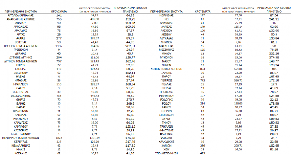 Αναλυτικά η γεωγραφική κατανομή των κρουσμάτων σε όλη την επικράτεια