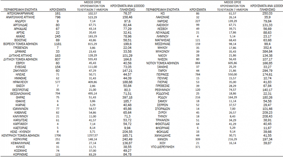 Αναλυτικά η γεωγραφική κατανομή των κρουσμάτων σε όλη την επικράτεια