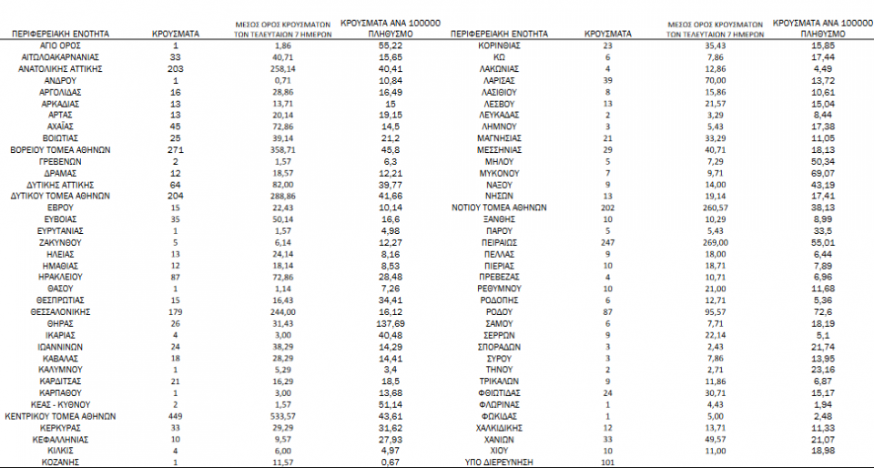 Αναλυτικά η γεωγραφική κατανομή των κρουσμάτων: