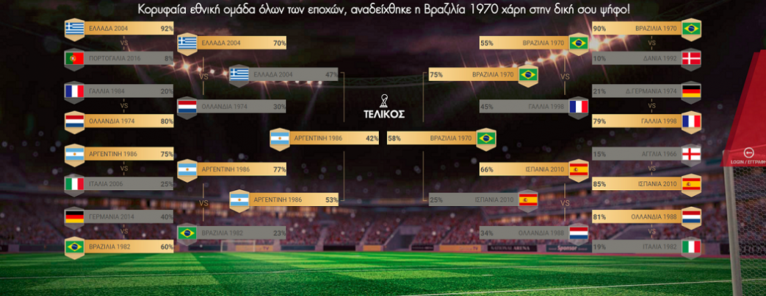 Με περισσότερες από 11.000 ψήφους συμμετείχε ο κόσμος στο διαγωνισμό του ΟΠΑΠ για την ανάδειξη της κορυφαίας εθνικής ομάδας όλων των εποχών.