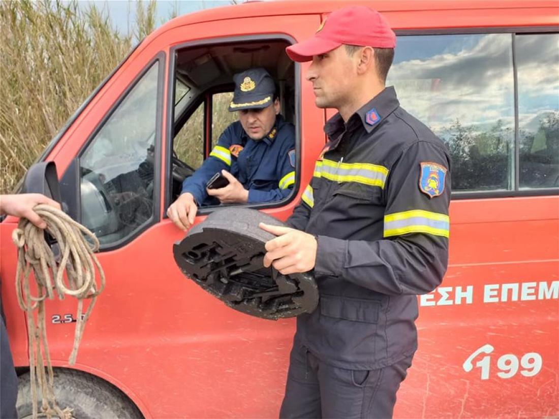 Λίγο μετά τις 3 το μεσημέρι οι πυροσβέστες βρήκαν ένα εξάρτημα αυτοκινήτου στην παραλία του Τυμπακίου.