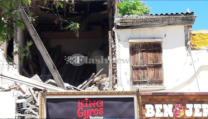 Από θαύμα δεν υπήρξαν τραυματισμοί καθώς το κατάστημα που βρίσκεται στο ισόγειο, κάτω από το τμήμα που κατέρρευσε είναι κλειστό.