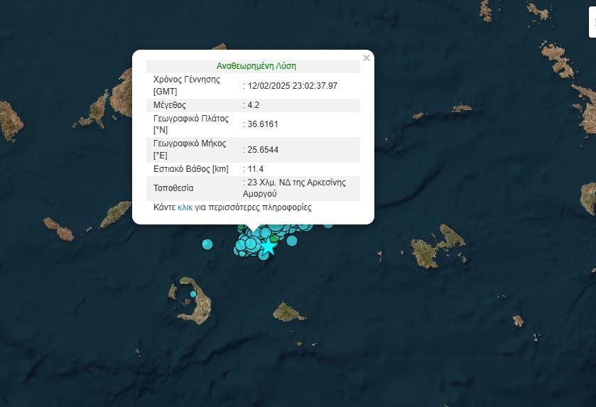 Κυκλάδες: Διπλή σεισμική δόνηση 4,2 Ρίχτερ (01:02) μεταξύ Σαντορίνης και Αμοργού
