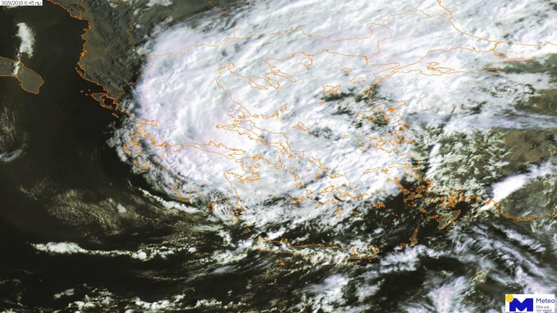 Τις πρωινές ώρες της Κυριακής 30/09 ο κυκλώνας εξασθενημένος βρίσκεται στην περιοχή μεταξύ Ανατολικής Στερεάς και Νότιου Ευβοϊκού, όπως διακρίνεται στη δορυφορική εικόνα, ενώ σύμφωνα με τα διαθέσιμα προγνωστικά στοιχεία τις επόμενες ώρες θα κινηθεί αργά βορειοανατολικά περνώντας στο Αιγαίο τις απογευματινές ώρες, όπως αποτυπώνεται στο Ανεμολόγιο.
