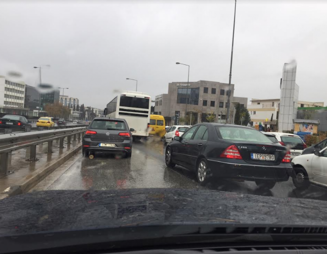 Κυκλοφοριακό κομφούζιο εξακολουθεί να επικρατεί στο Λεκανοπέδιο Αττικής λόγω της βροχής αλλά και των εξοδούχων των Χριστουγέννων, όπως και εκείνων που θέλουν να κάνουν τις αγορές τους.