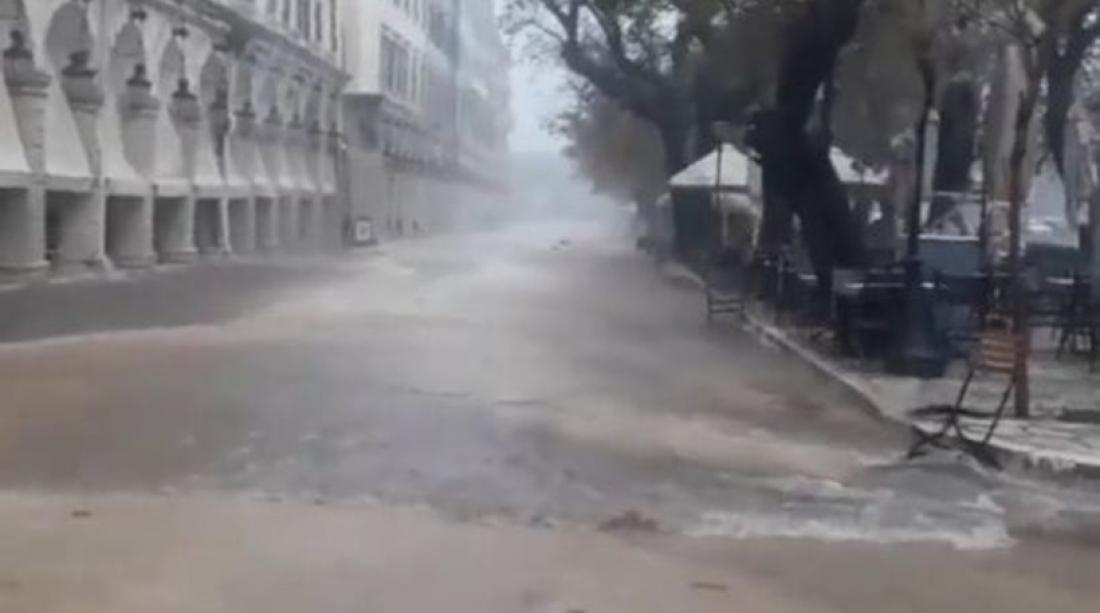 Σε ορμητικούς χείμαρρους έχουν μετετράπη οι δρόμοι στον Γάιο την πρωτεύουσα των Παξών, από τα έντονα καιρικά φαινόμενα και τη δυνατή νεροποντή, που πλήττουν το .