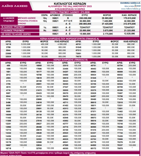 Λαϊκό Λαχείο - Κλήρωση 4η - Τρίτη 24/1/2023: Αυτοί είναι οι τυχεροί λαχνοί