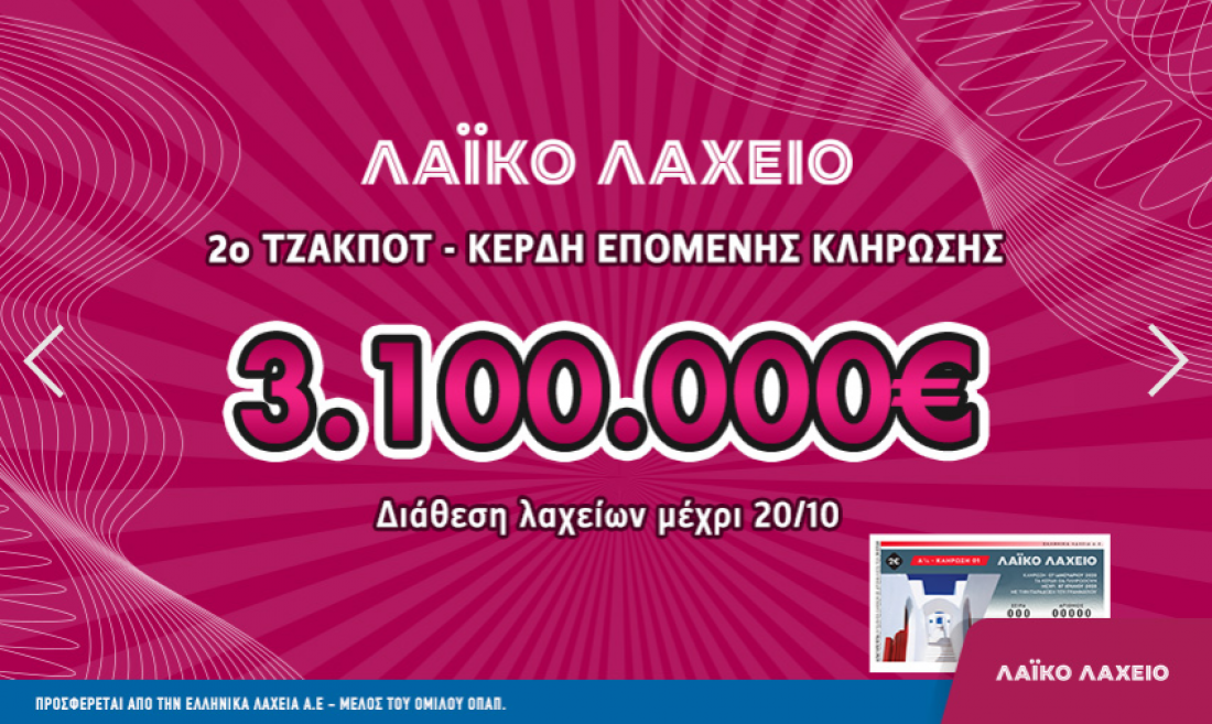 Λαϊκό Λαχείο - Κλήρωση 42 - Τρίτη 20/10/2020: Πανικός για 3.100.000 ευρώ που μοιράζει η κλήρωση 42 της Τρίτης 20 Οκτωβρίου του Λαϊκού Λαχείου, λόγω του τζακ ποτ της περασμένης Τρίτης 13/10.