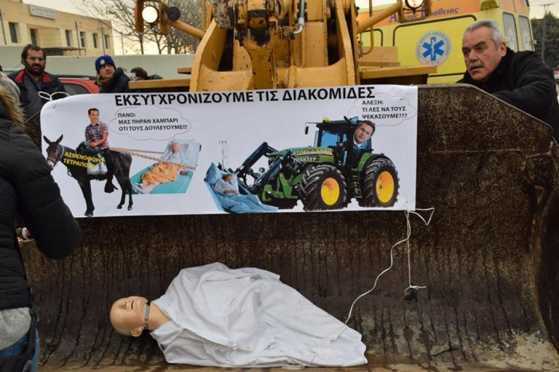 Με συνοδεία τρακτέρ από το μπλόκο της Νίκαιας, πέρασε από την Λάρισα το «Καραβάνι Υγείας» που διοργάνωσε η Πανελλήνια Ομοσπονδία Εργαζομένων στα Δημόσια Νοσοκομεία (ΠΟΕΔΗΝ).