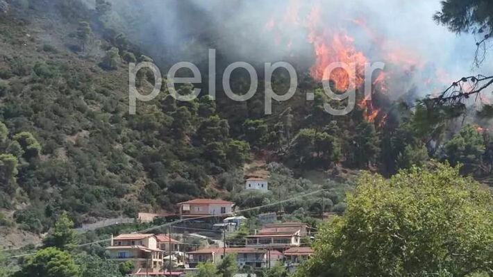 Σύμφωνα με την ενημέρωση της Πυροσβεστικής επιχειρούν επίγειες και εναέριες δυνάμεις