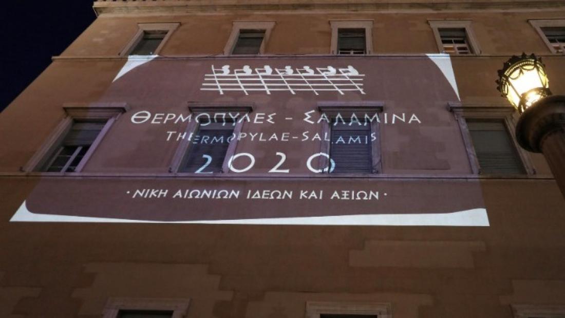 Η Βουλή των Ελλήνων φωταγωγήθηκε σήμερα το βράδυ με το λογότυπο του Επετειακού Έτους «Θερμοπύλες - Σαλαμίνα 2020. Νίκη Αιώνιων Ιδεών και Αξιών», συμμετέχοντας στις εκδηλώσεις ανάδειξης της πολυσήμαντης αυτής επετείου.