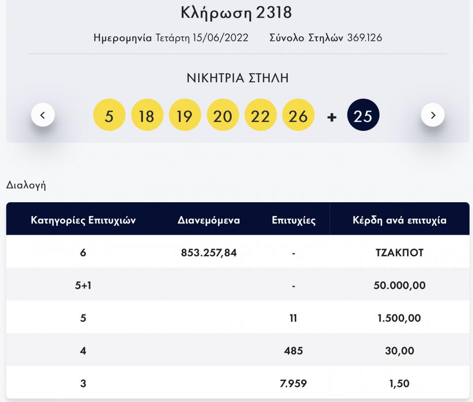 Οι έξι τυχεροί αριθμοί της κλήρωση 2318 είναι: