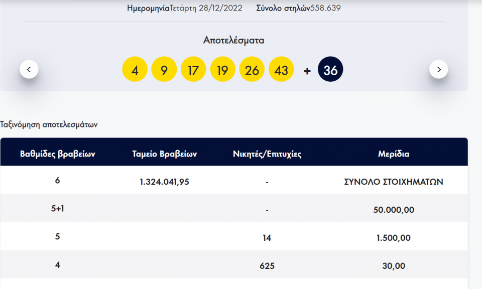 ΛΟΤΤΟ - Κλήρωση 2374 - Τετάρτη 28/12/2022: Αυτοί είναι οι τυχεροί αριθμοί